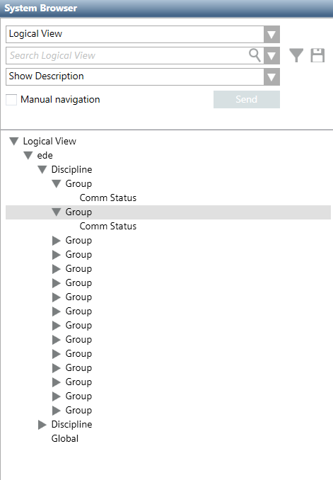 In System Browser, the descriptive text is displayed on the corresponding hierarchy level.