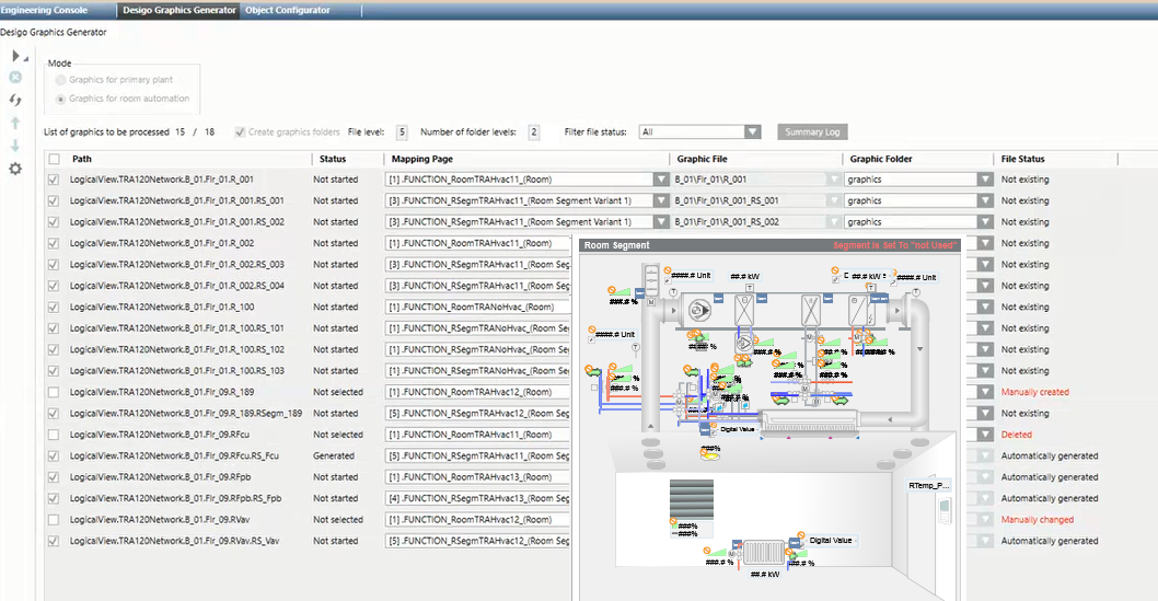 - Drag the appropriate object folder to the Desigo Graphics Generator tab.