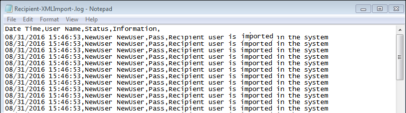 To effectively manage the import and export of recipients, it is necessary to receive feedback about the import export activity as well as any problems that may be occurring. The Notification provides separate and comprehensive Log Files that can be used to track and analyze the import export recipient activities. View or open the Log file stored at [Project Directory]\log on the server.