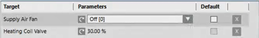- The column Parameter is available in the Targets expander if one or more stored target objects include the configuration writable parameters to command or reset actions.