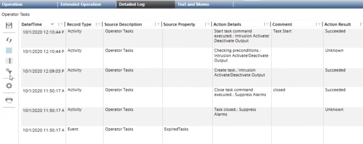 NOTE 2: If there was a problem executing the task, the relevant event is generated in Event List (see Operator Tasks Reminders in Event List), and one of the following statuses will result: