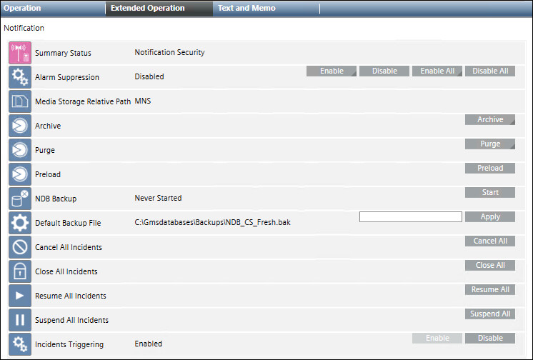 You can create a backup of the notification database from either the System Management Console or from the backup commands available in the Operation/Extended Operation tabs of the Contextual pane in the management platform.