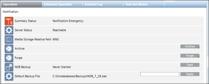 - The system begins backing up the NDB database. The default backup location is [installation drive:]\GMSBackups. Although the Last Execution Status indicates