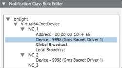The management station finds and displays devices with notification class recipients on the BACnet network.