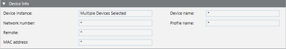 Note that the Device instance field changes to read Multiple Devices Selected. This means that two or more devices are selected for editing. The remaining fields contain asterisks.