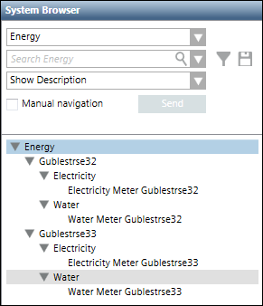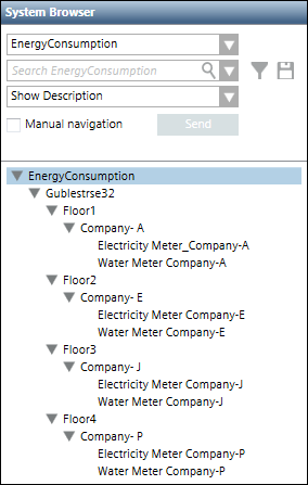 - Meters distributed on the basis of media units such as water, power, gas or oil. In this case, you can create a hierarchy of the various media units and then associate meters to each media unit. For example, you can create a view and add electricity, gas, and water media units to this view. To this structure, you can then assign the meters for monitoring electricity, gas, and water consumption respectively.