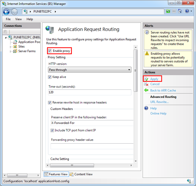 Enable Proxy for the Application Request Routing (ARR) Cache in IIS