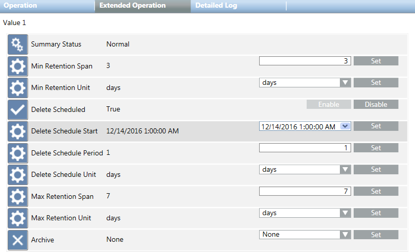 - Select Project > Management System > Servers > Main Server > History Database > Archive Groups Custom > [7 days archive group].